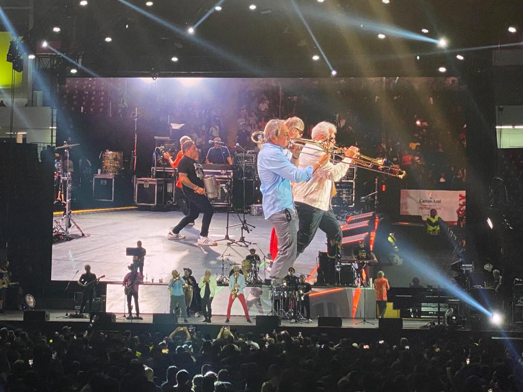 El concierto estuvo a punto de cerrar al ritmo de “La Guitarra”, incluso un bombero salió a refrescar el ambiente encendido de la noche.