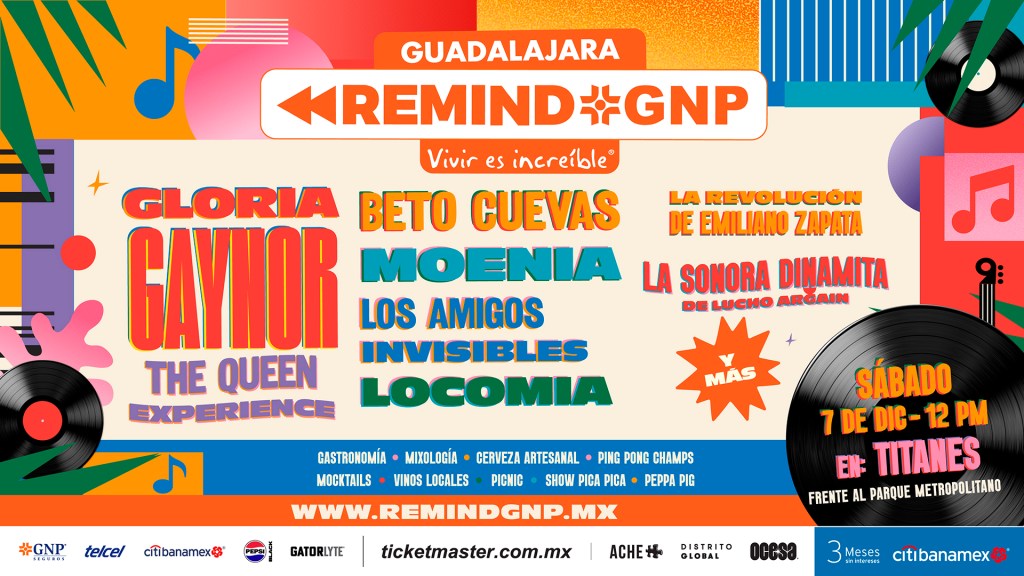 Guadalajara, Jalisco. Todo listo para que este sábado 07 de diciembre, se realice la segunda edición del Remind GNP Guadalajara, un festival único donde el pasado se convierte en el mejor plan familiar del año, con música que marcó época, actividades para grandes y pequeños, y espacios pensados para disfrutar juntos en familia y con amigos.