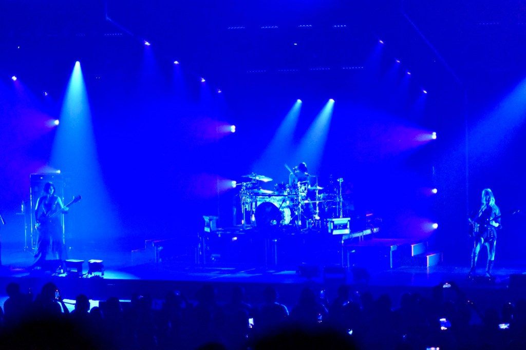 Un solo de guitarra fue suficiente para que los asistentes iluminaran el recinto con sus celulares sin necesidad de una indicación previa. Entre los momentos más destacados del show estuvieron fragmentos de canciones como «Show Me the Light», «Black Holes (Don’t Hold On)», «Free Falling» y «The End».